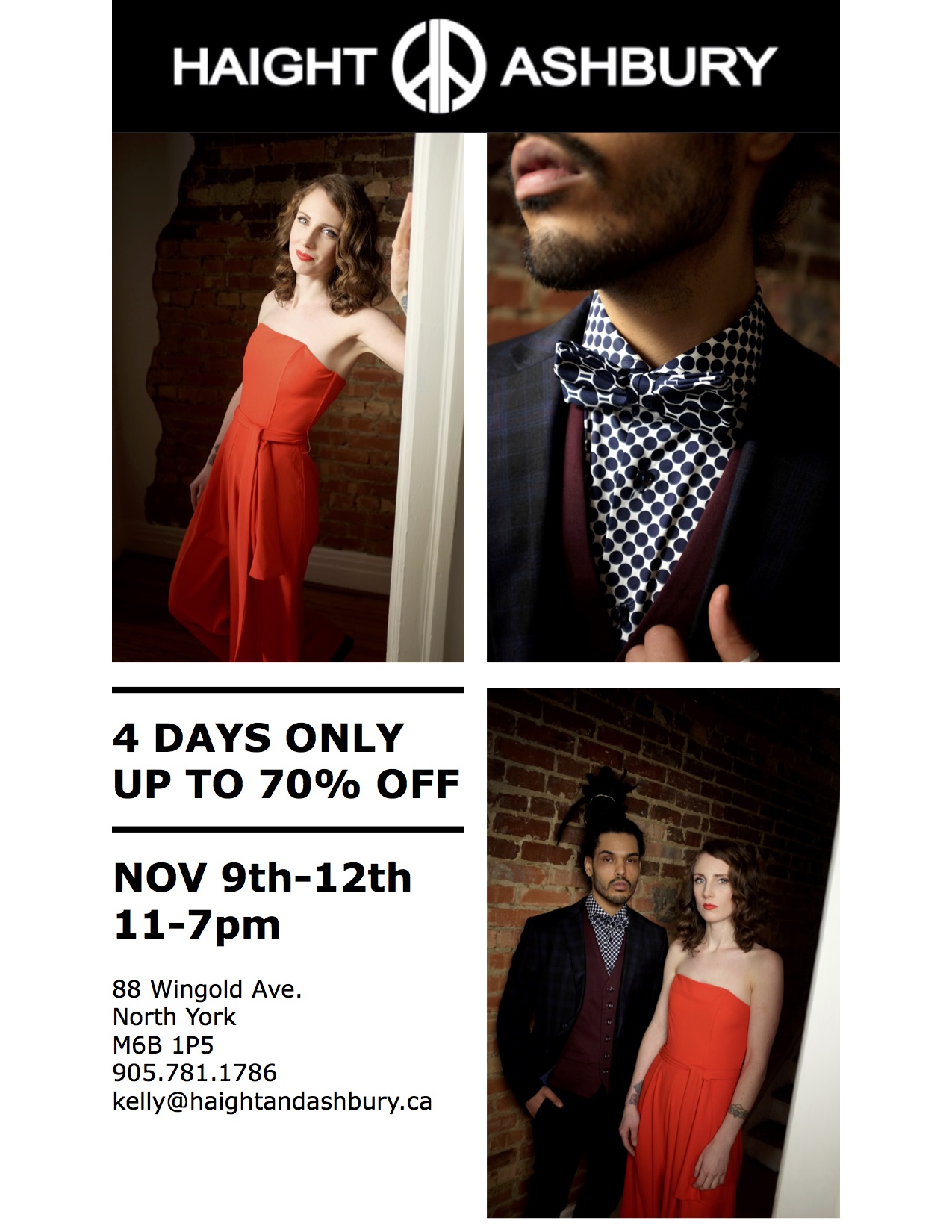 Haight & Ashbury's Fall sample sale is from Wednesday November 9th - Saturday November 12th only.